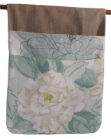 They are designed to fit over the top bar of a zimmer frame and on most bed rails. The bags are made from sturdy designer vintage fabric, predominantly silk / linen / cotton. They are elegant with mostly neutral colours and with one or two inside pockets. Each has a ca. 22cm strap with a metal safety hook at the end, to easily attach (and find!) keys or similar. Designed for strength and safely secured with large Velcro strips, each bag has enough space for a book, newspaper, glasses, medication, water bottle, purse etc. - a must-have for independence! Warm hand wash is recommended. (The Length is the total with the bag opened out, and the Height and Width are the approximate size as seen when attached - see images. The Height can be more or less, depending on how you join the Velcro pieces.)
